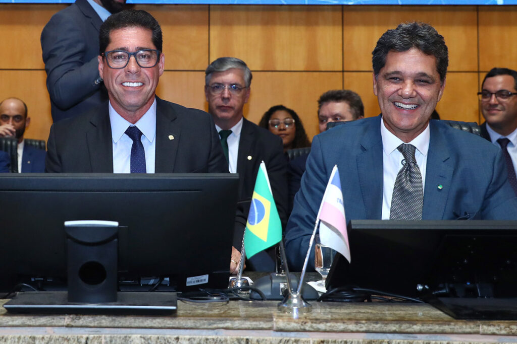 Presidente da Casa, deputado Marcelo Santos e o vice-governador Ricardo Ferraço (MDB) no cargo de governador do Estado.