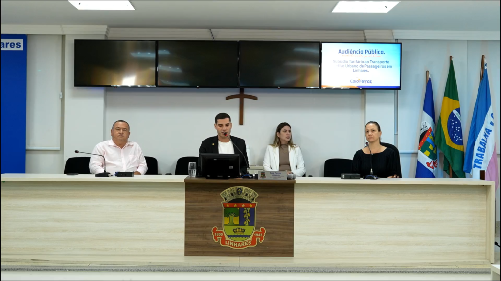 A Câmara Municipal de Linhares realizou, na noite desta terça-feira (08/04), uma audiência pública para discutir a possibilidade de subsídio tarifário ao transporte coletivo urbano no município. O encontro aconteceu no plenário da Casa de Leis e foi requerido pelo vereador Caio Ferraz, com o objetivo de promover um espaço de diálogo, escuta e transparência sobre o tema.