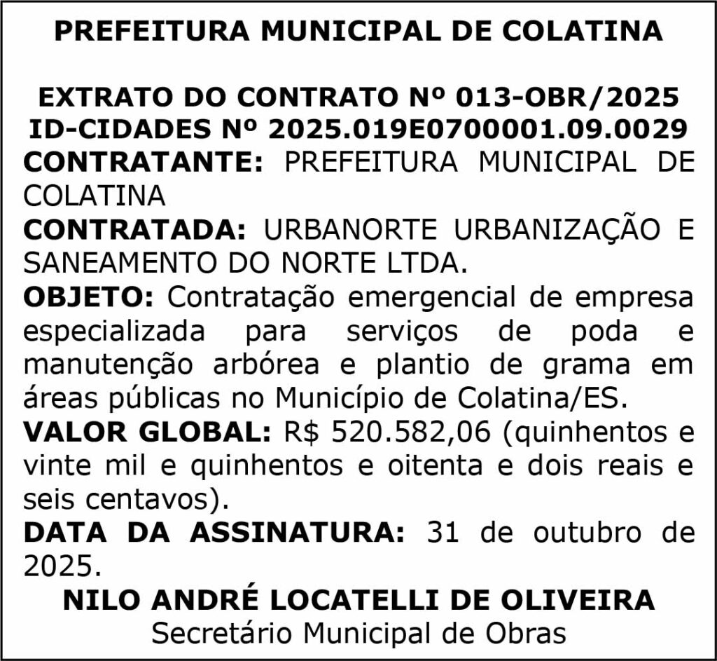PREFEITURA MUNICIPAL DE COLATINA – Nº 228 – COLATINA – ES, DIA 04 DE NOVEMBRO DE 2025