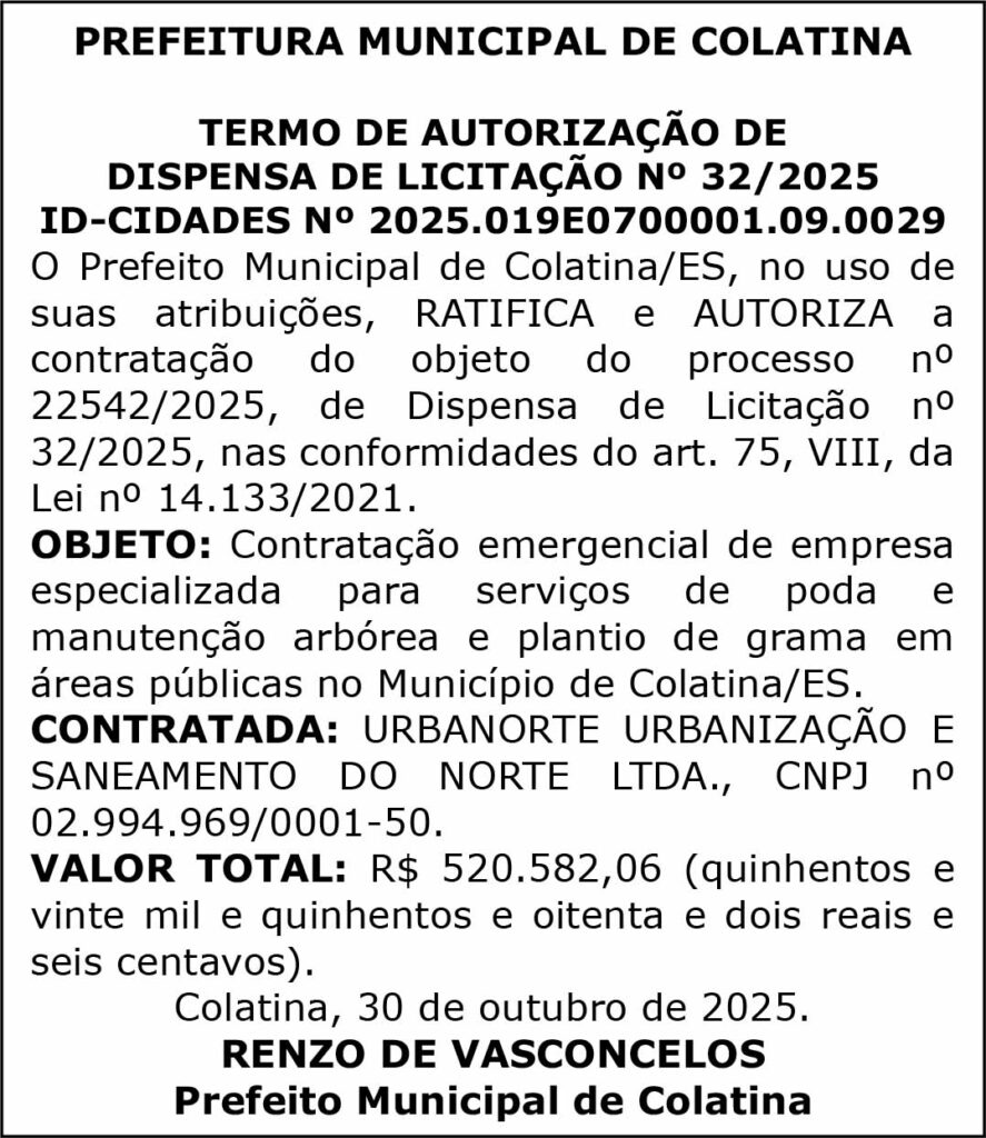 PREFEITURA MUNICIPAL DE COLATINA – Nº 225 – COLATINA – ES, DIA 31 DE OUTUBRO DE 2025
