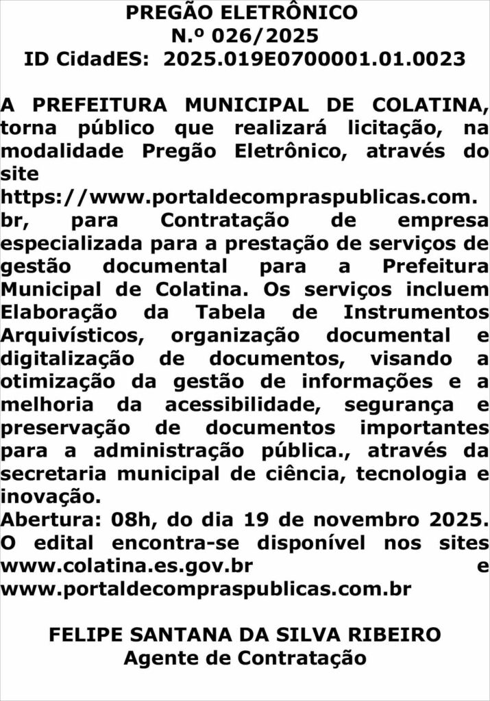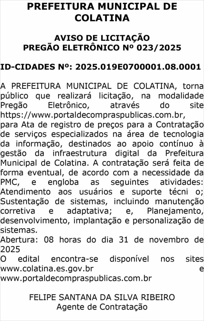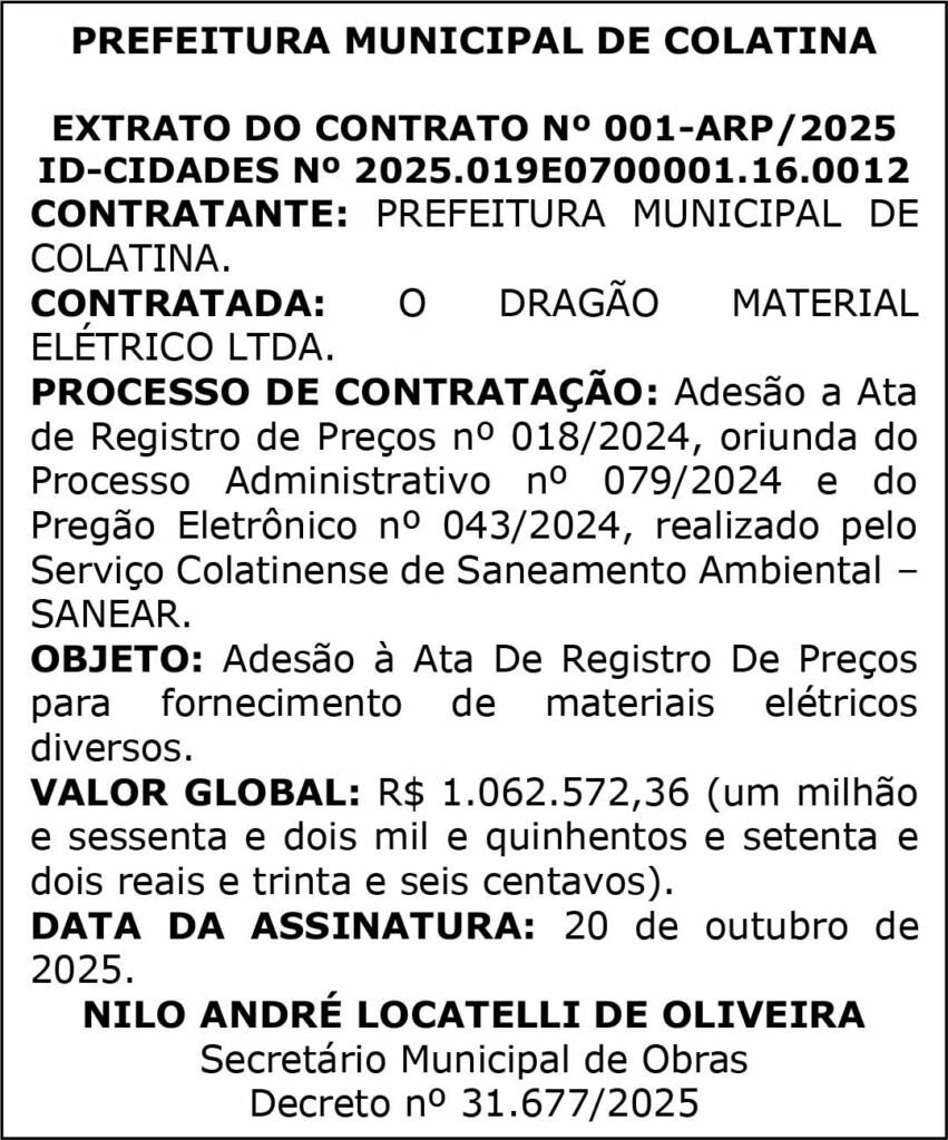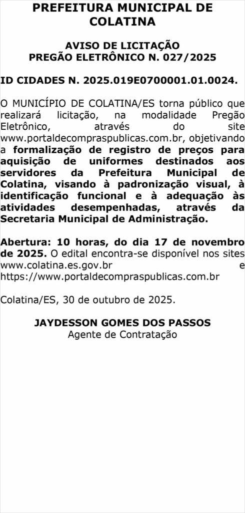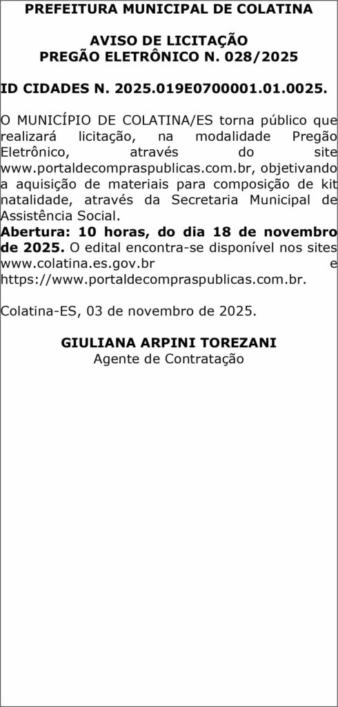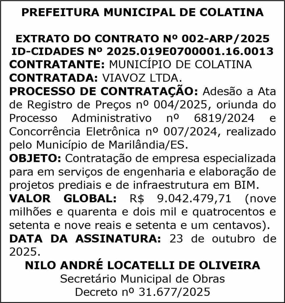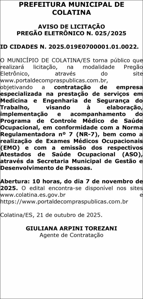 PREFEITURA MUNICIPAL DE COLATINA – Nº 224 – COLATINA – ES, DIA 31 DE OUTUBRO DE 2025