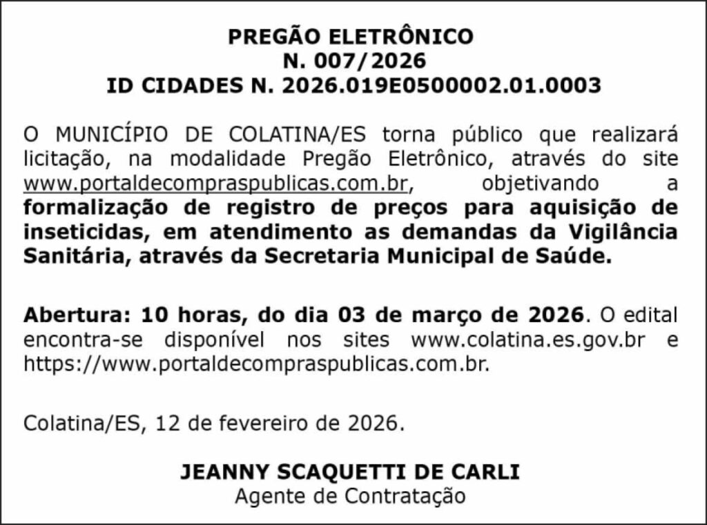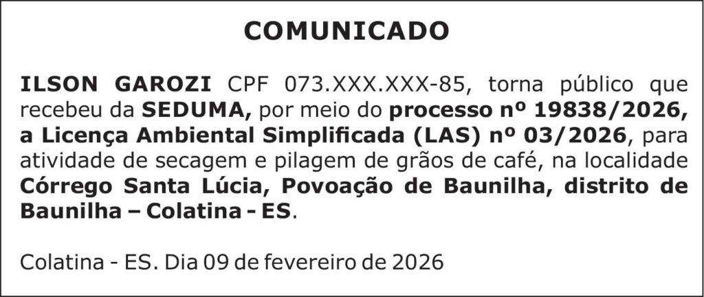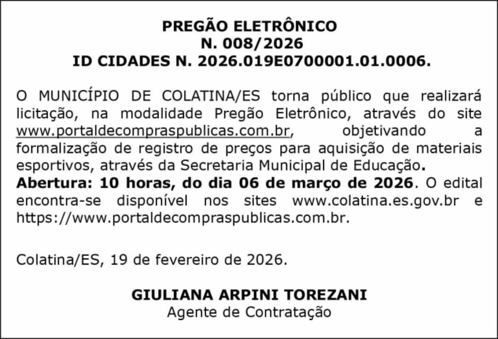 COLATINA – ES, DIA 19 DE FEVEREIRO DE 2026