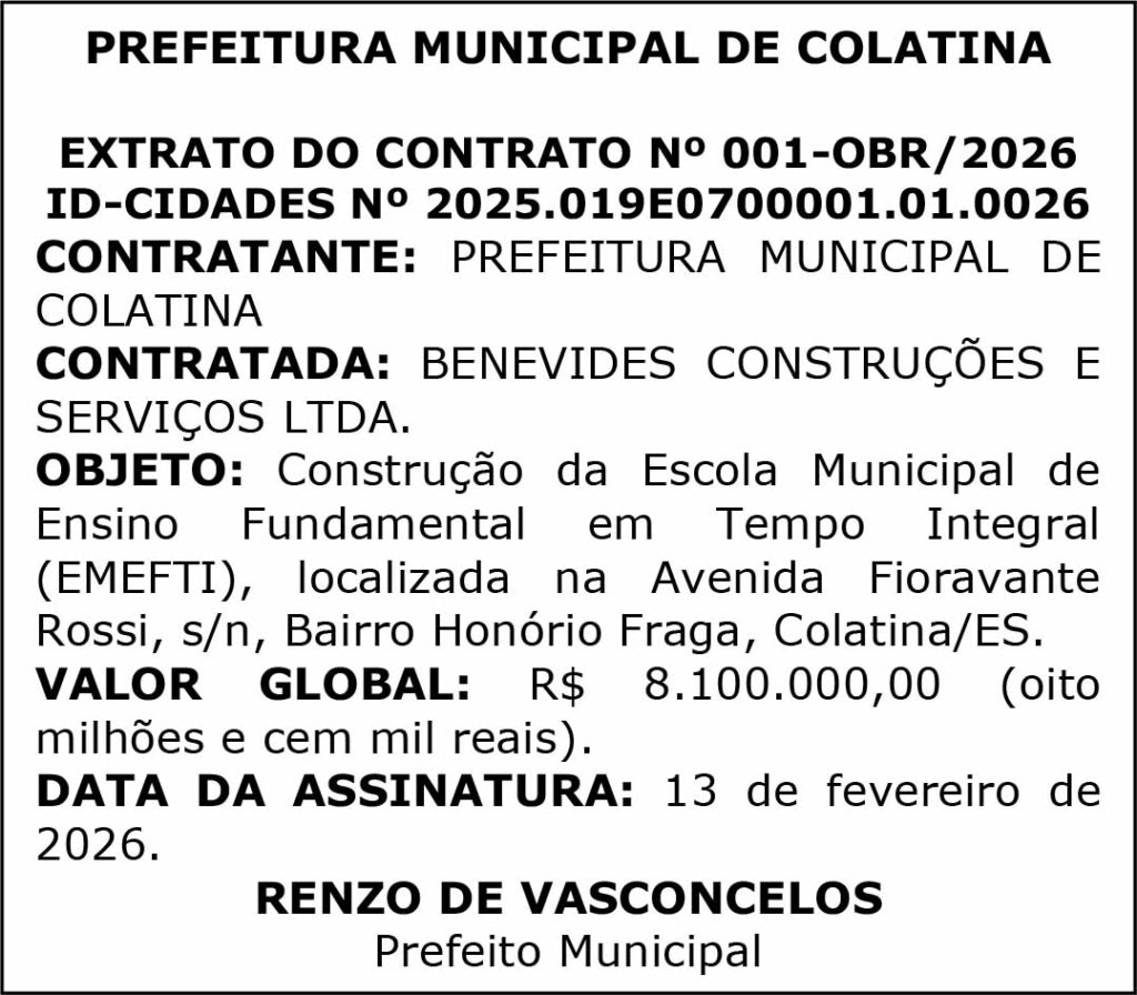 PREFEITURA MUNICIPAL DE COLATINA – Nº 253 – COLATINA – ES, DIA 19 DE FEVEREIRO DE 2026