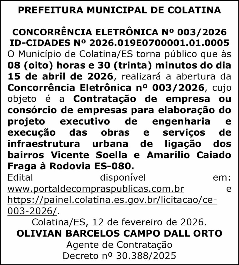 PREFEITURA MUNICIPAL DE COLATINA – Nº 251 – COLATINA – ES, DIA 11 DE FEVEREIRO DE 2026