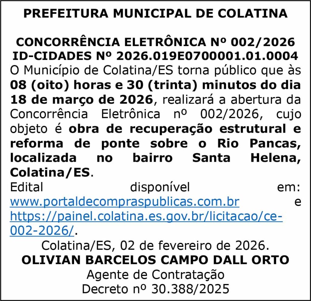 PREFEITURA MUNICIPAL DE COLATINA – Nº 248 – COLATINA – ES, DIA 02 DE FEVEREIRO DE 2026