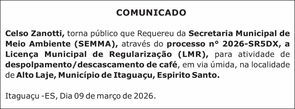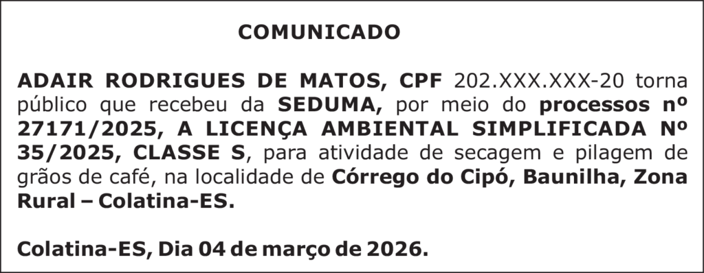 COLATINA – ES, DIA 04 DE MARÇO DE 2026