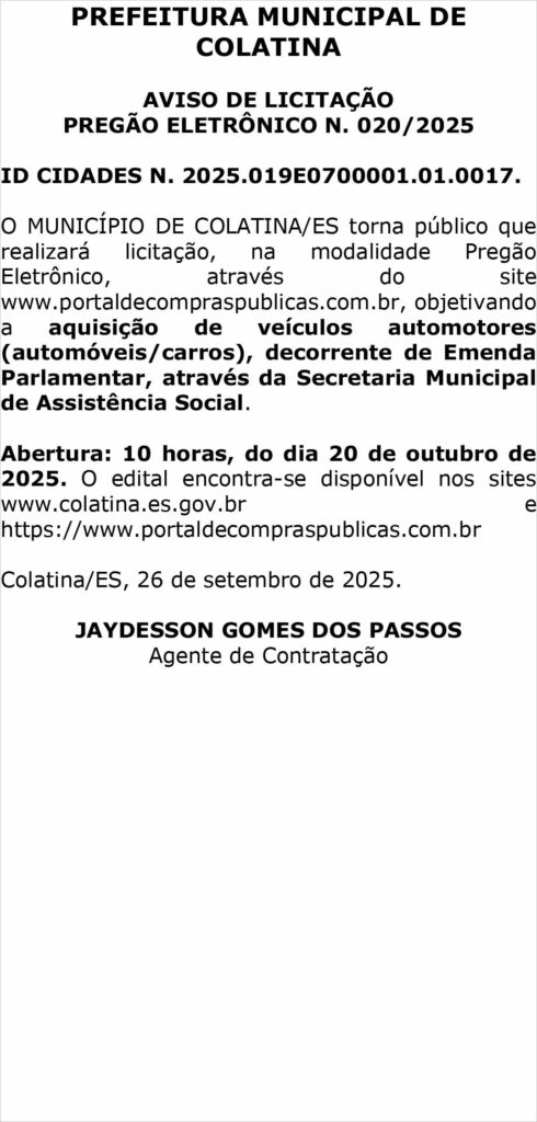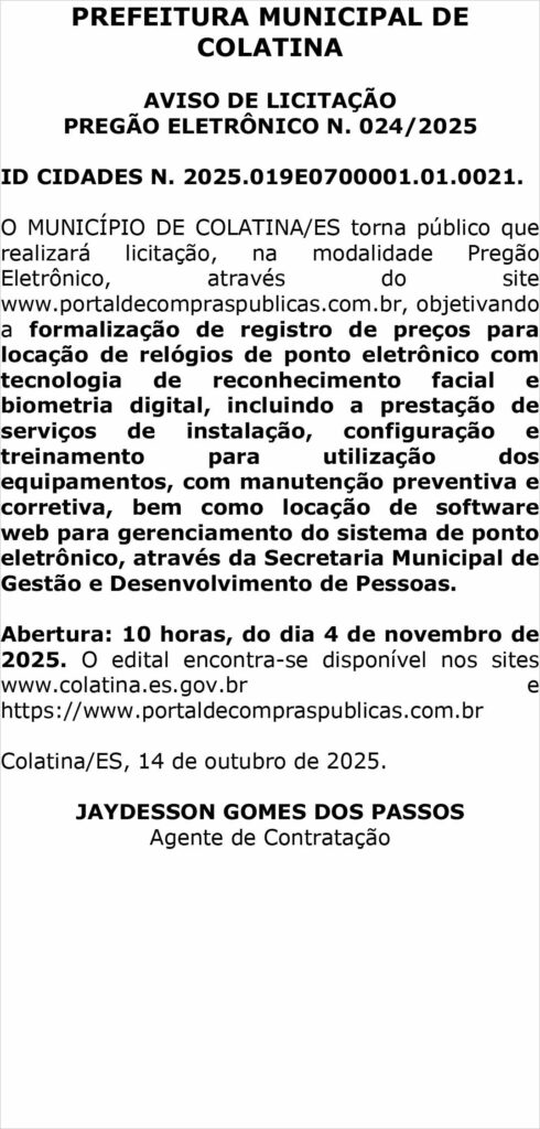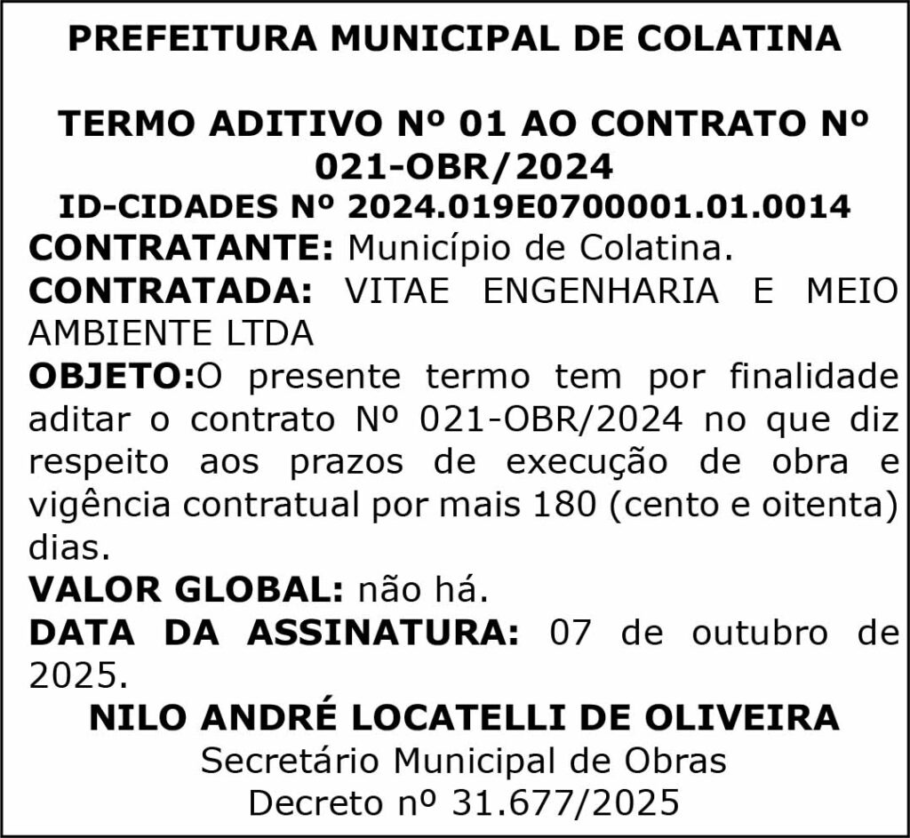 PREFEITURA MUNICIPAL DE COLATINA – Nº 215 – COLATINA – ES, DIA 1 DE OUTUBRO DE 2025