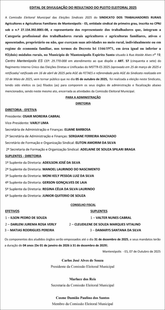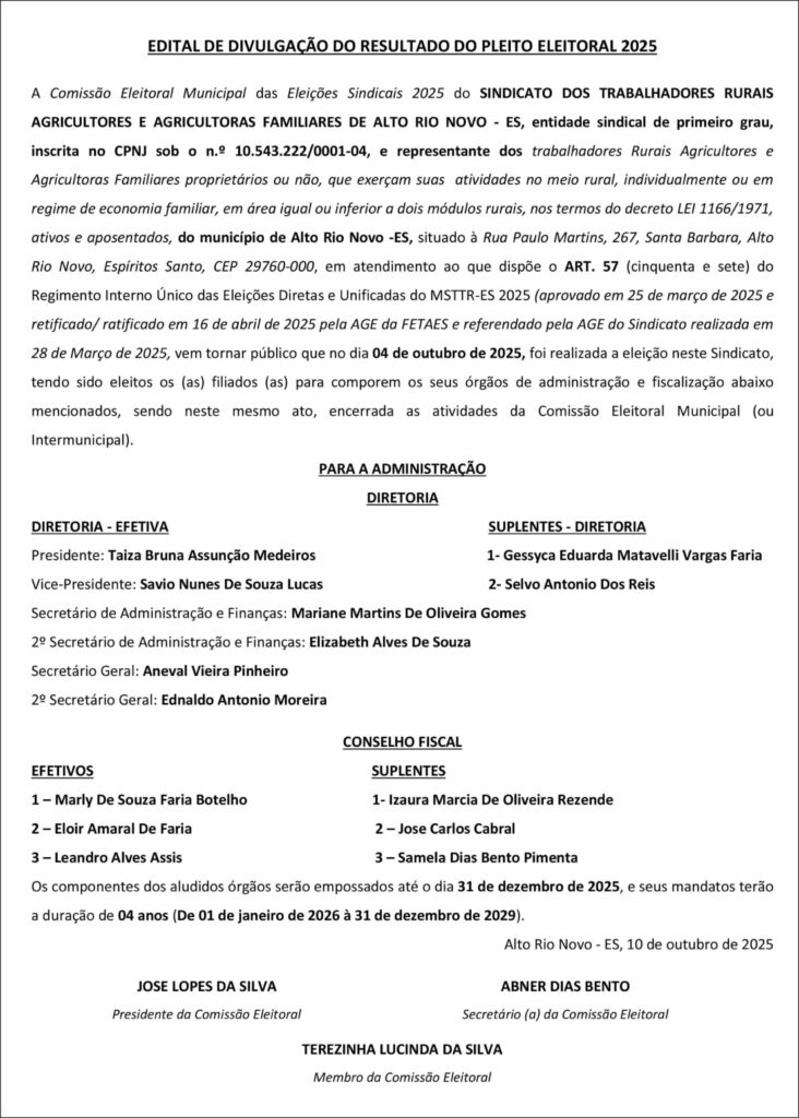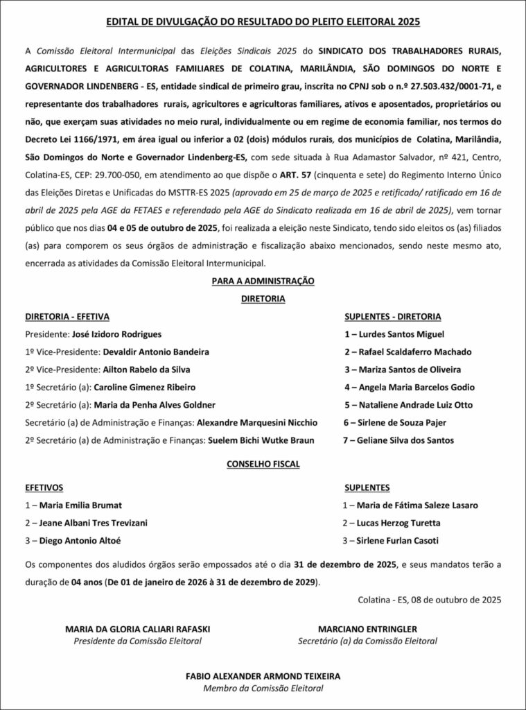 COLATINA – ES, DIA 10 DE OUTUBRO DE 2025