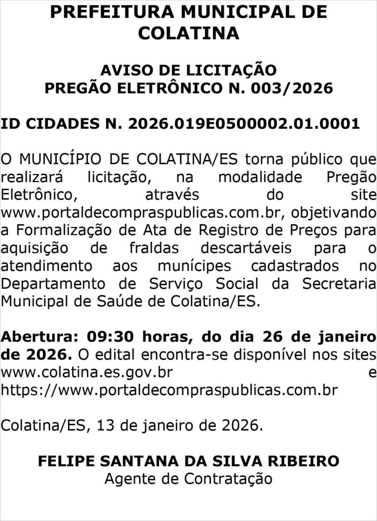 COLATINA – ES, DIA 13 DE JANEIRO DE 2026