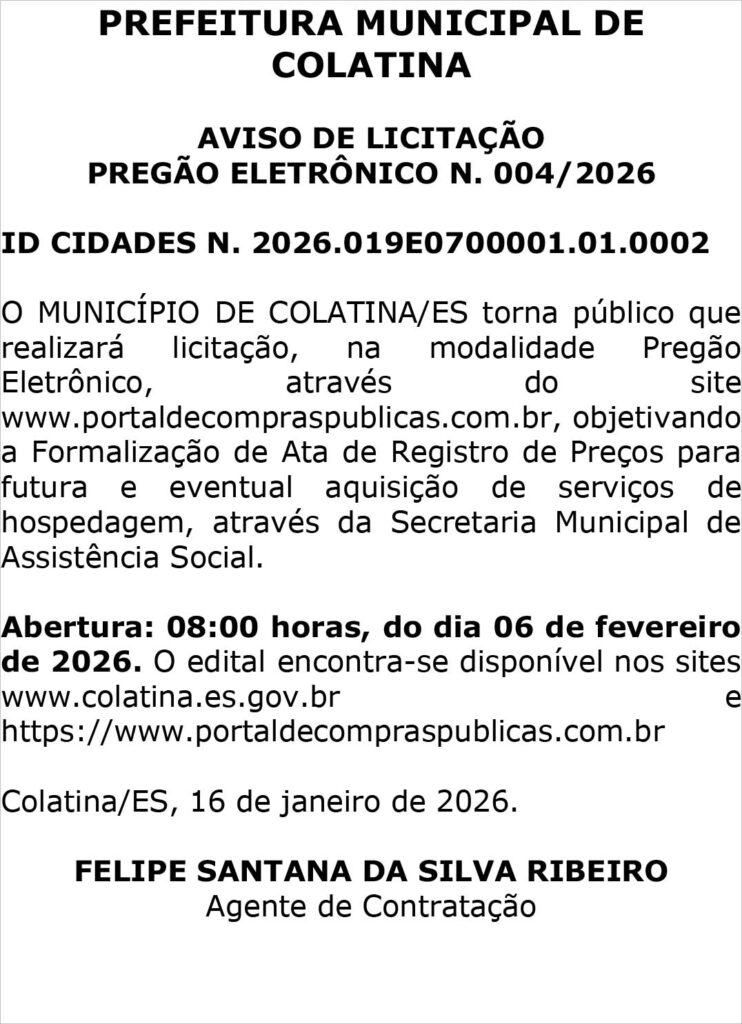 COLATINA – ES, DIA 21 DE JANEIRO DE 2026