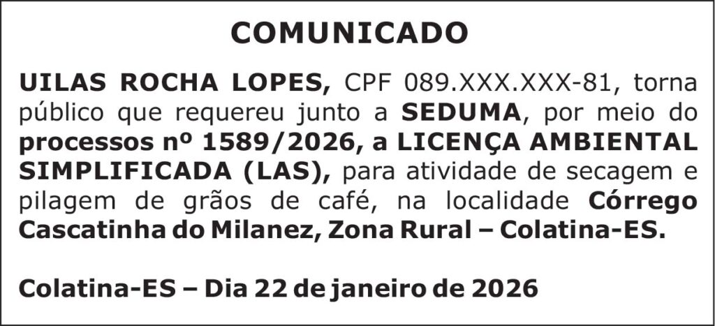 Colatina-ES – Dia 22 de janeiro de 2026