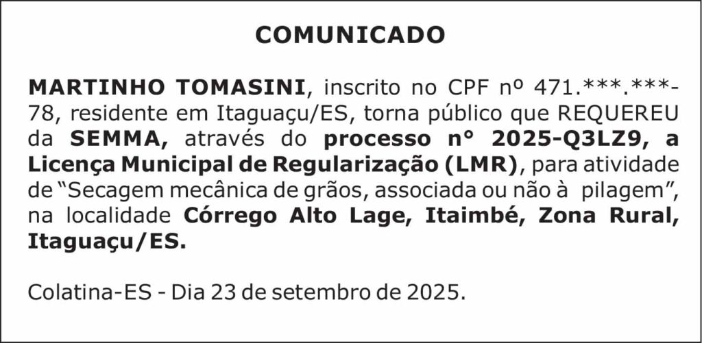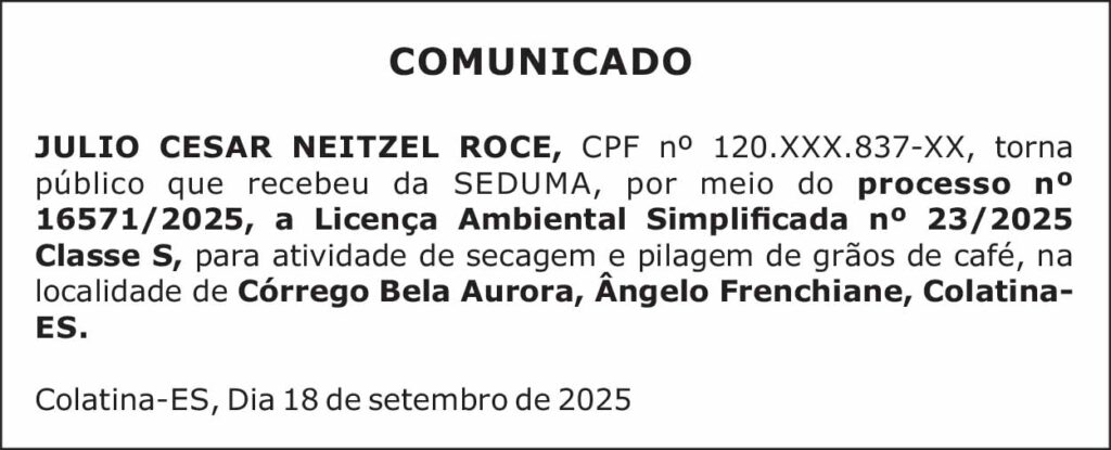 COLATINA – ES, DIA 18 DE SETEMBRO DE 2025.