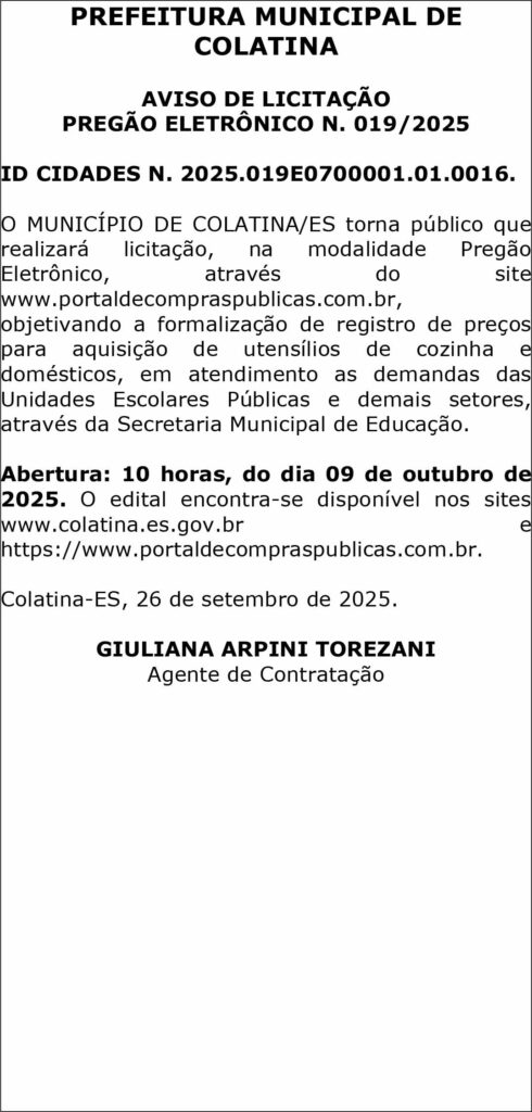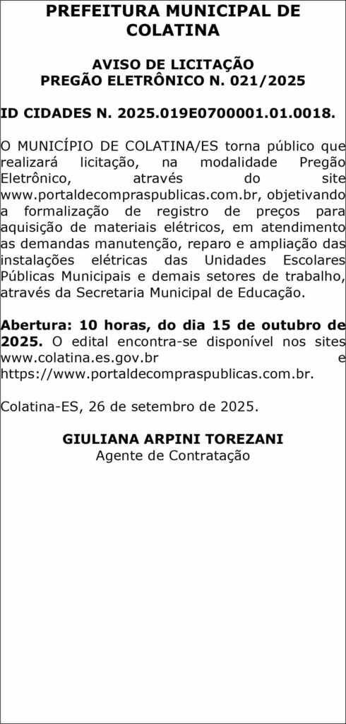 PREFEITURA MUNICIPAL DE COLATINA – Nº 211 – COLATINA – ES, DIA 24 DE SETEMBRO DE 2025