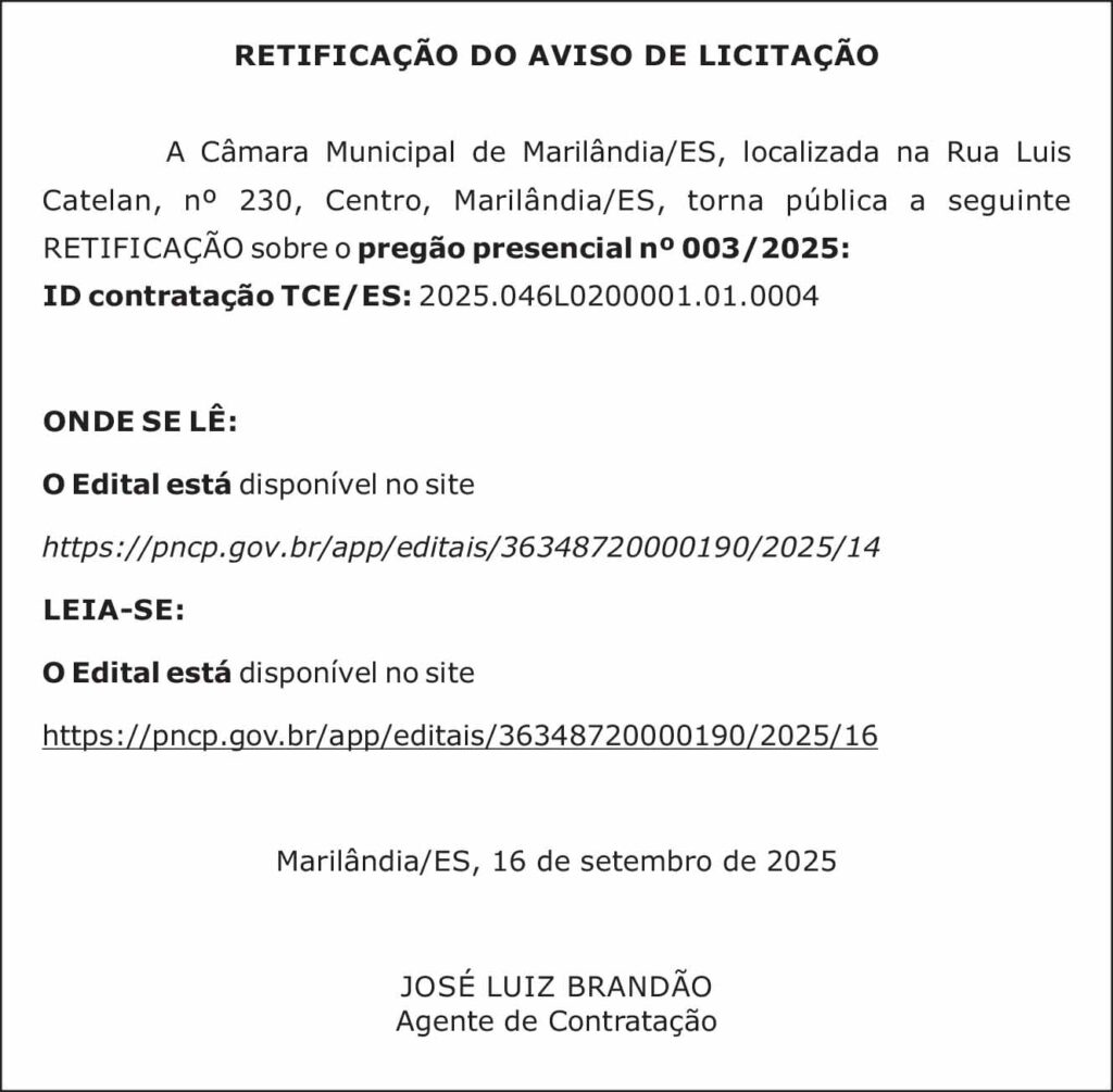 Câmara Municipal de Marilândia/ES – Colatina-ES, dia 17 de setembro de 2025