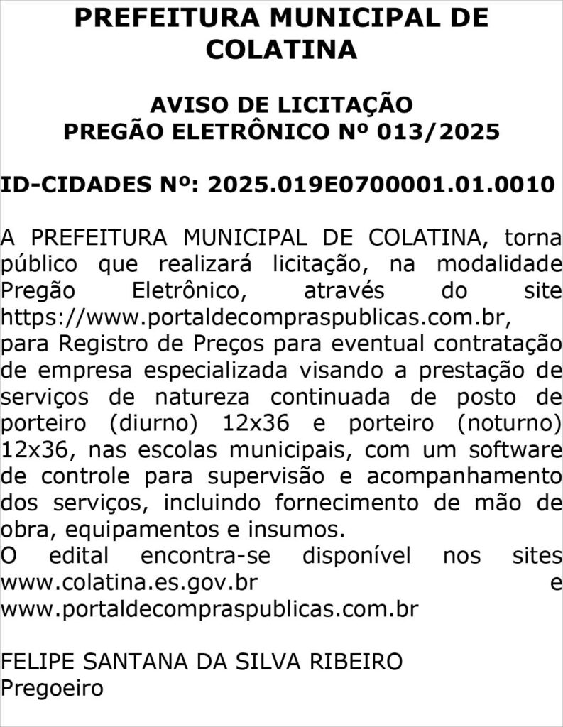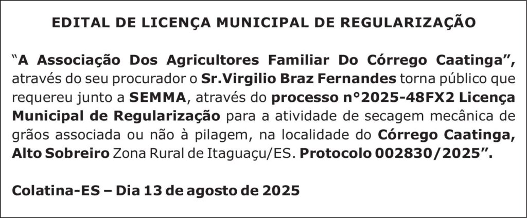COLATINA – ES, DIA 13 DE AGOSTO DE 2025