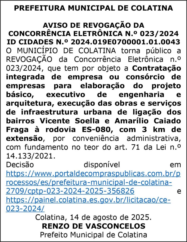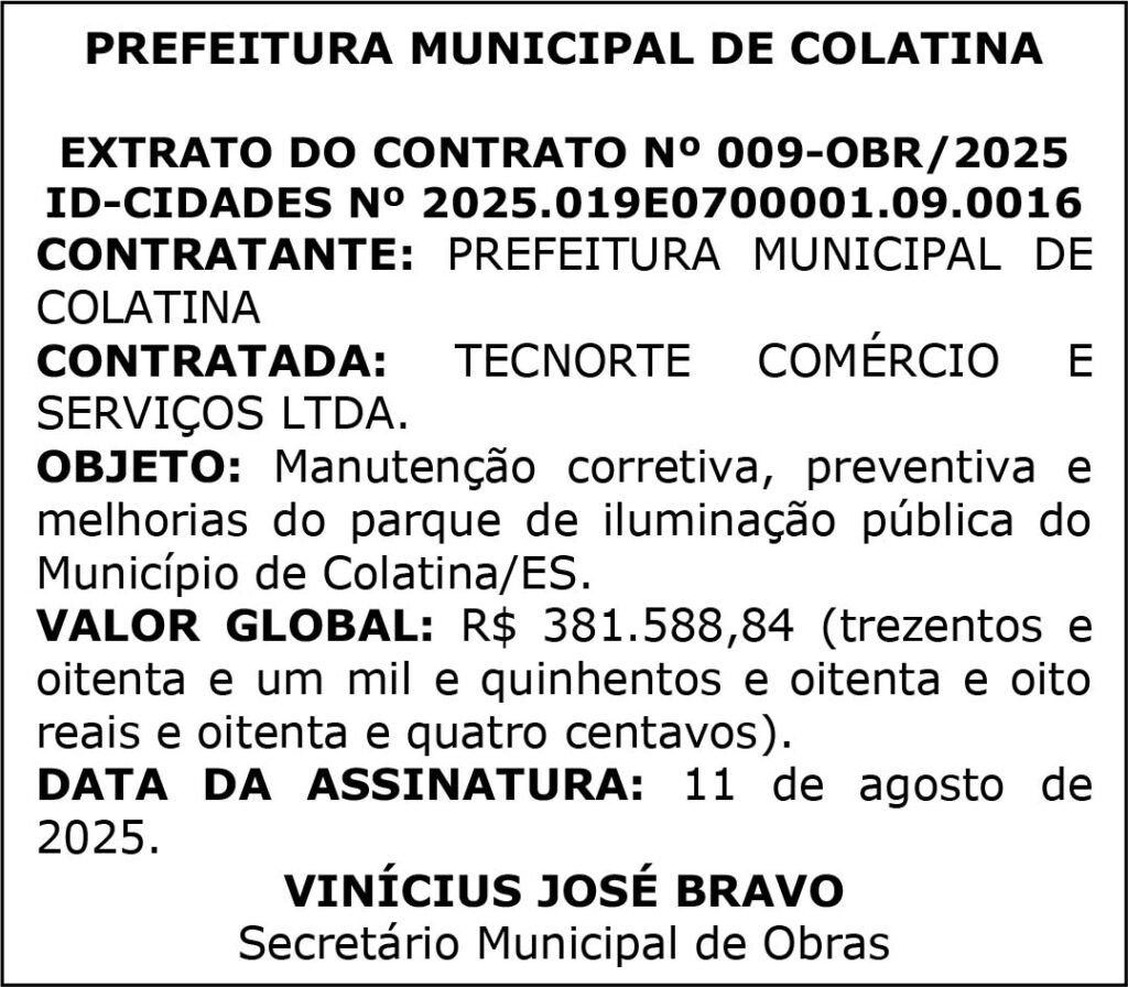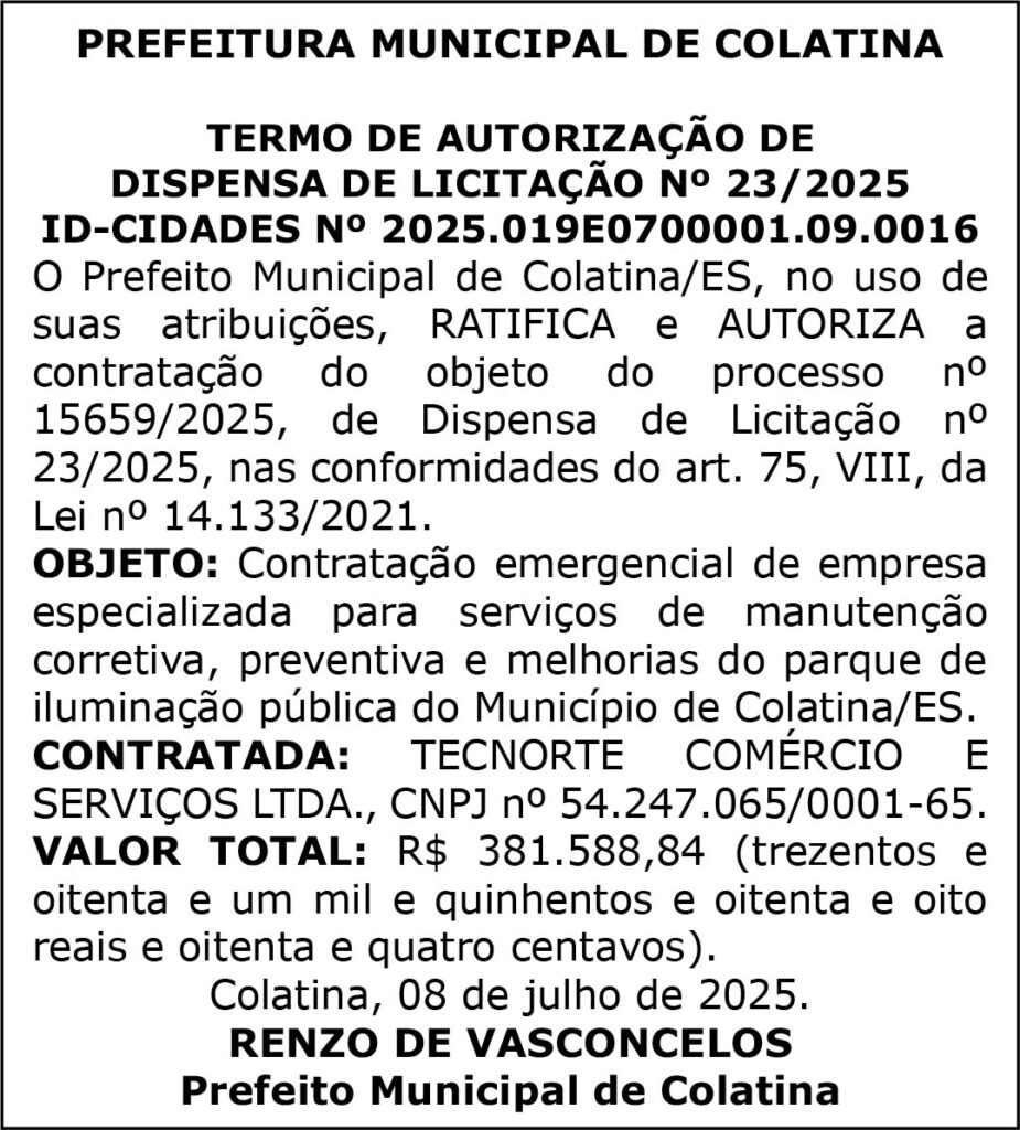 PREFEITURA MUNICIPAL DE COLATINA – Nº 204 – COLATINA – ES, DIA 19 DE AGOSTO DE 2025
