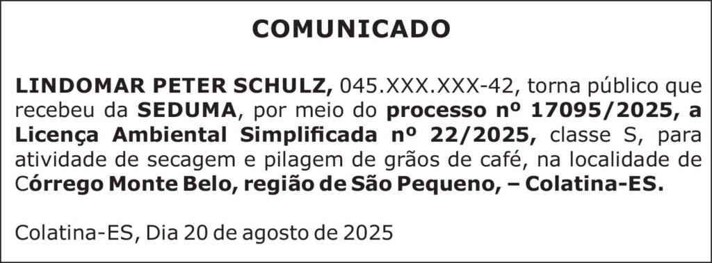 Colatina-ES – Dia 20 de agosto de 2025