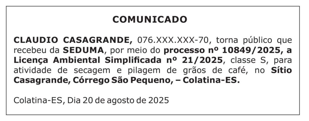 Colatina-ES – Dia 21 de agosto de 2025