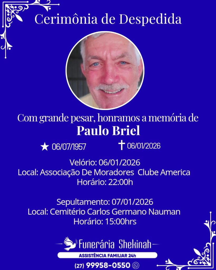 A notícia do falecimento do Paulo Briel, conhecido por todos os colatinenses e da região norte noroeste como o dono da Banca do Briel, deixou milhares de pessoas tristes, já que Paulo Briel era uma referência no dia a dia da Princesa do Norte. Ele sempre atencioso, amigo, teve uma participação com o mercado da imprensa, cultura e o comércio de revistas e áudios na cidade. .
