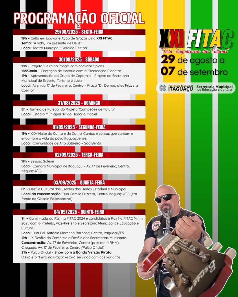 “A FITAC – Festa Itaguaçuense das Culturas é muito mais que um evento: é um encontro de histórias, memórias e tradições que moldam a identidade do nosso povo. É o momento em que celebramos a diversidade que constrói Itaguaçu, honrando cada raiz, cada costume e cada herança deixada por nossos antepassados.”